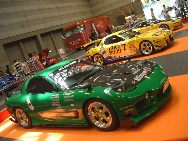 私たちのブースの後ろではたっくさんのチューンド中古車が販売されており、