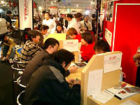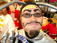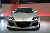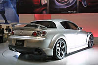 | RX-8です。 映画『X-MEN 2』で使われたという噂の ブルーのRX-8も展示されていましたよ。 アクション映画とスポーツカーの関係って、結構ありますよね。 やっぱり見てる映画にスポーツカーが出てるとうれしくなるのはあたしだけぢゃないだろうなぁ〜。 |