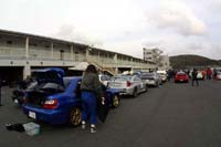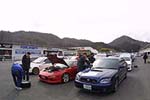 | この日の受付は9時30分。 スタッフは9時を到着時間の目標としていたので、わたしは途中の朝ご飯タイムも考えて、朝の6時に出発しました。 3月の朝の6時はまだ真っ暗でした・・・。しかもかなり寒かったです。 連絡を取り合いながら、いつものロッテリアで集合して朝の珈琲で休憩。 しばらくすると、お客さんのヒサリン@エボZさんと遭遇し、何台か連なりながらサーキットまで行きました。 |