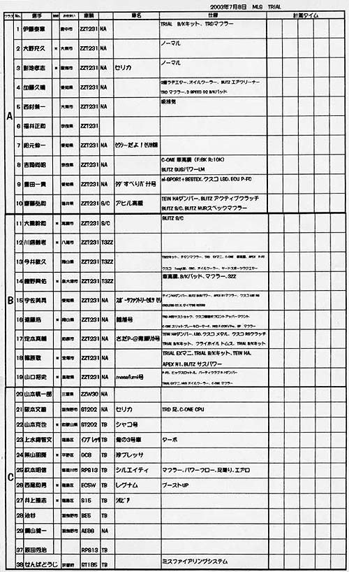 CグループはZZT231セリカ以外の車輌とわかるんですが、