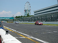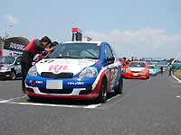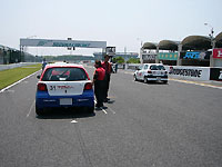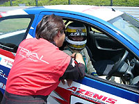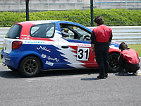 | 6月6日練習走行 お昼過ぎにサーキット入りした僕達は、 すでに前日からサーキットで練習をしていた ドライバーの松村選手と合流した。 |