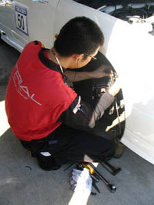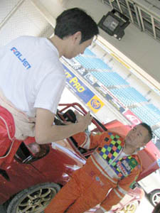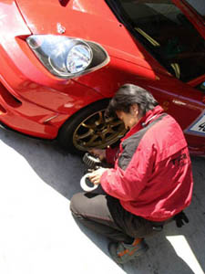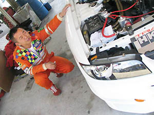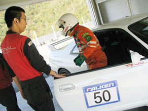 (  ̄し ̄ )MR-Sもタイムを出そうと メカニック(  ̄し ̄ )、ドライバー奥村選手 と万全の態勢です。