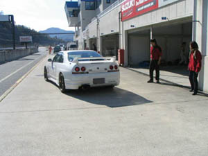 到着すると、今後の方向性を探す為のセットアップをするというシュガーたくまくんのBCNR33があったのですが、 サーキットに着いてすぐの時間帯しか走れる枠がないようで… マッキーはすぐにレーシングスーツに着替えてコースへと出ていきました。ε=ε=ε=ε=ε=(o  ̄ー ̄)oブーン