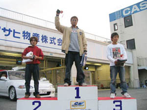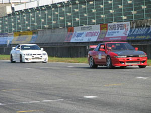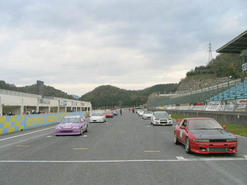 そして、3本目はバトルです。 グリッドに車を並べます。毎回バトルを見るのが1番好きデス(*´∀`) 1台1台スタッフが車を並べます。S13廻れシルビアさんが1番前のグリッドをゲット!