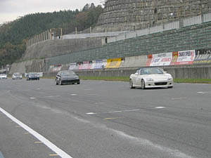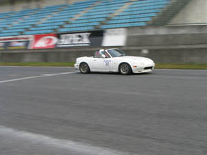 1コーナーに入る手前から赤いMR-Sに追いかけられていたまるあさんのロードスターを見ました (゚Д゚*) まるあさんがんばれー