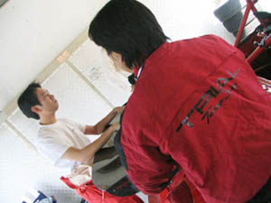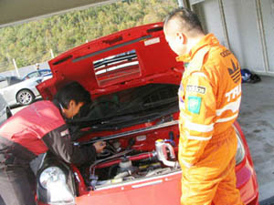 (  ̄し ̄ )メカニックと奥村選手の綿密な打ち合わせ