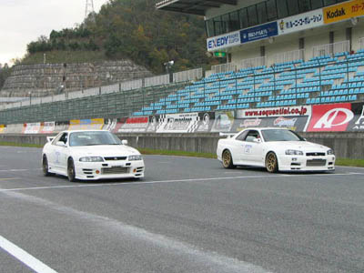 シュガーたくまくんのBCNR33でドライバーはマッキーと、白いコアラさんの自前BNR34. 横に並んで赤→青のよーいどん!! (o ̄∇ ̄o)
