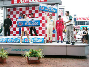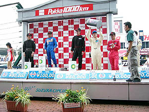 今回は西パドックなので、スタートが見えないので少し不安だ!![]() でも、モニターがあったので、モニターのまん前をGETしてスタートを見守る。 さて、緊張のスタート! ![]() 松村選手は好スタートをきるものの、前の2台がスタートミス!! その結果、1コーナーまでにつまってしまい、行き場を失う。 1コーナーから2コーナー、S字にかけて5番手争いでサイドバイサイドの攻防!! S字では接触もしているみたいだ。 (実際、左のミラーが倒れてました) その5番手争いをしている間に、3台が抜けだし、トップグループを作り、 4番手はまだ手の届く範囲に、2、3周目になんとか5番手グループを抜けだし 次は4番手争い!! これまたテールトゥノーズ、サイドバイサイドの攻防を繰り返し、 なんとか4番手に!! そのころ、1〜3位は少し差が開いてて、届きそうにない!! ![]() 6周目まで4番手をキープして、5位の選手を抑えていたものの、 ファイナルラップに入ってモニターに写った時には、5位!! ガ〜〜〜〜〜ン ( ̄□|||| 抜かれてる!! でも、まだすぐ後ろについている!まだチャンスはある。 裏ストレートでなんとかスリップについて、130Rで横に並びかける! シケントを抜けて、最終コーナー!!モニターに写っているのは… 4位!! 4位で最終コーナーを抜けて、そのままゴーーーーール! ![]() ![]() 本当になんとかって感じで、4位入賞! ![]() これで、シリーズポイントを10ptにして、5pt差で2位にくいこんできました! ![]() まだまだシリーズチャンピオンは分かりません。 でも次回は、得意なT・Iサーキット! ![]() ここでとりあえず、表彰台をゲットできれば、少し落ち着けそうなのだが…。 まだまだ目が離せません!!!!! |