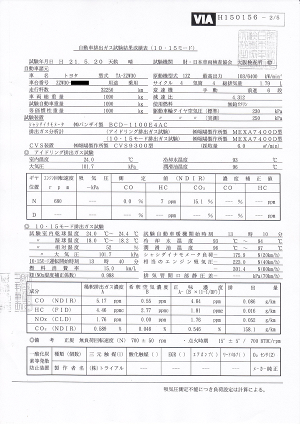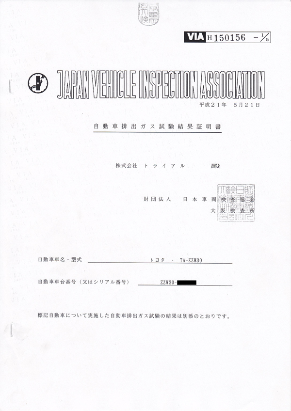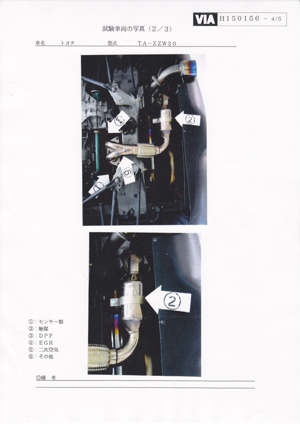 当然メタルキャタライザーは、自動車排出ガス試験に合格しておりますので車検対応品です。