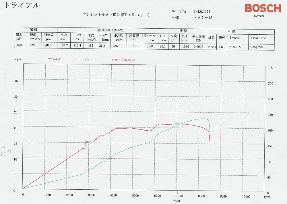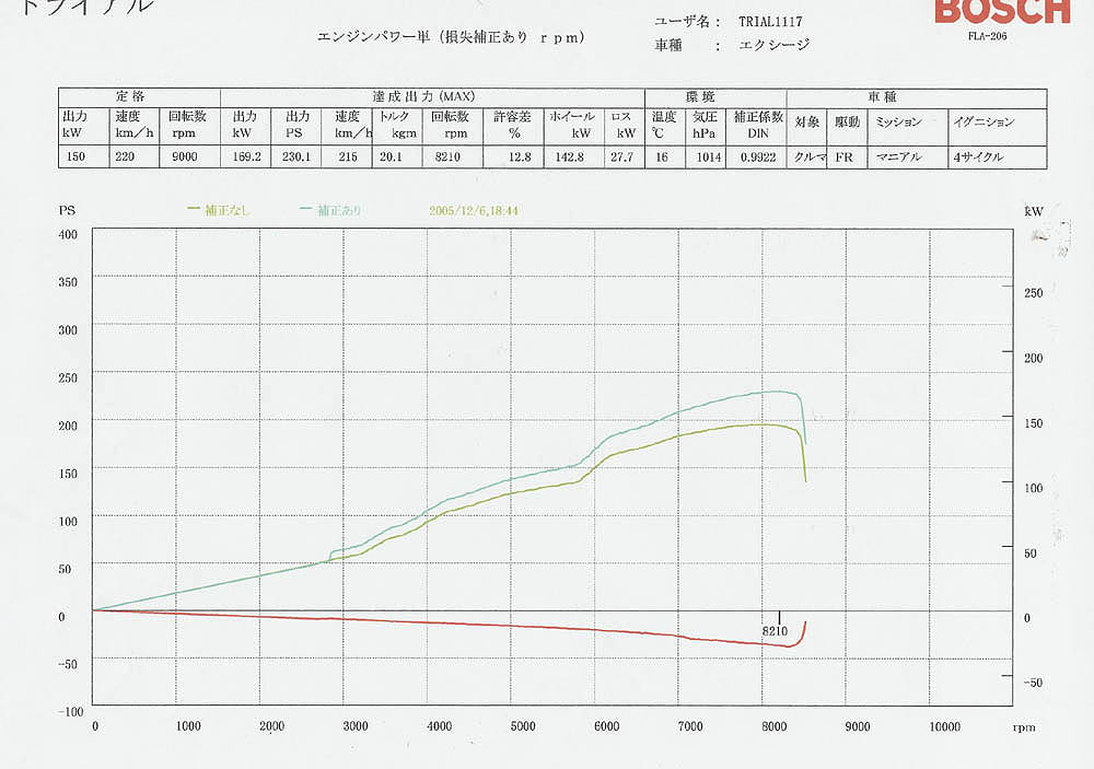 その上、5700 rpm 以上の回転でも ノーマルとは全然違うパワーを得る事ができます。 高回転になればなるほど、パワーが上がってきます。 パワーチェックの12月6日時点では、レブリミットを 8600 rpm で入れてます。