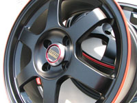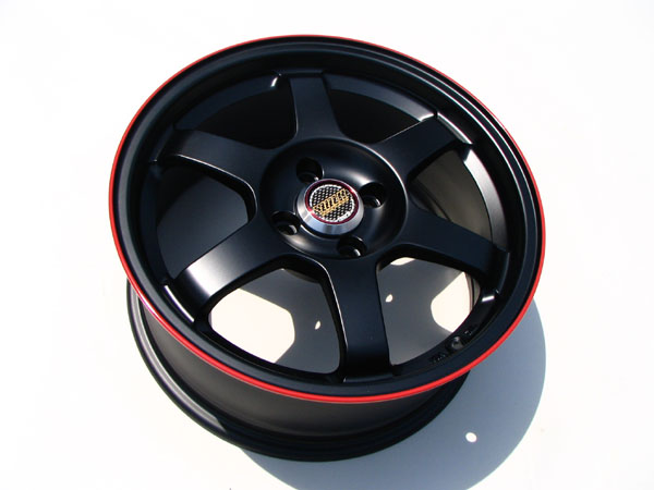 | 鍛造1ピースホイール カラー : Flat BK/Red ring フロントリアセット販売! 数量限定! 付属品 : バルブ、センターキャップ |