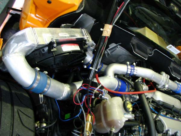 当然、インタークーラーは強制冷却の為 電動ファンを装着しています。 |