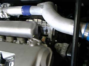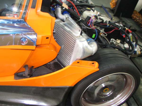 スーパーチャージャー本体及びパイピング、 インタークーラーはエリーゼ111Rにも装着できる様、 又、コーナリングスピードをも考え 全て低位置にレイアウトしました。 |