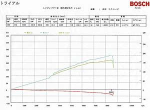 低回転でトルクが発生して、タイヤスリップし、 後ろに2名分の体重をかけて計測しています。 |