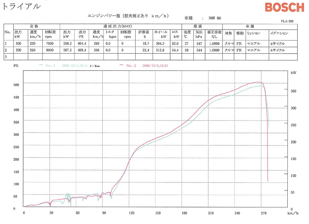 ノーマルパワーと比較し、15ps もアップした。