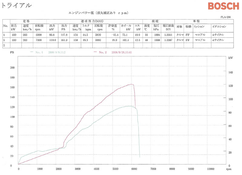 ECUのセッティングにおいてもHKSの通常データーとは別に現車合わせを行いました。
