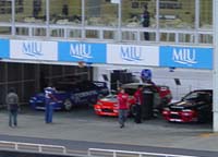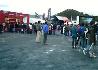 中に入ると・・・ピットにはさまざまな車輌が準備に追われており、ピットエリア内パドックでは出展テントブースが立ち並び、食堂の近くでは食べ物関係の出店が並んでいました。