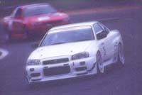最終コーナーに見えてきた!と思ったら1番で入って来るのは白色のR34です。