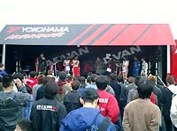 テントの中では、走っているのと同じようなミニカーやプラモデルの展示販売やTシャツ、中古パーツの販売、ゲームのコーナーやドライバーのサイン会、おでんやさん、周富徳の肉まんやさん(笑)などなど盛沢山でした。