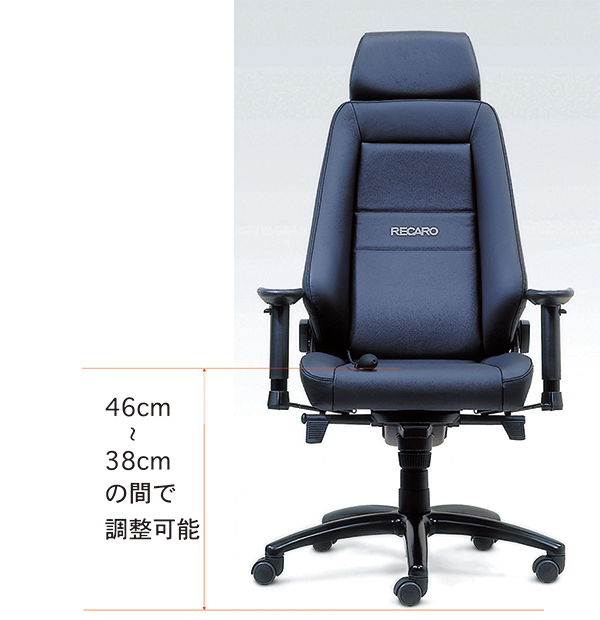 シートの高さは、38cm?46cmの範囲で細かい調整が可能です。